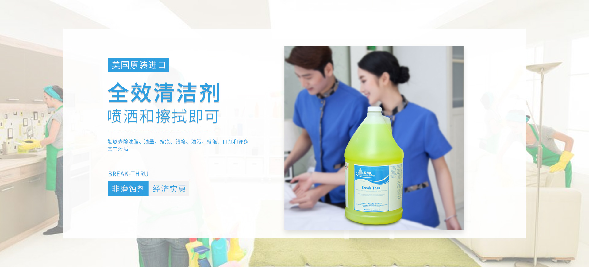 新朗環(huán)境自2015年起與美國(guó)具百年歷史的跨國(guó)企業(yè)RMC(Rochester Midland Corporation)合作, 進(jìn)口 RMC用于機(jī)械制造、交通運(yùn)輸、航天航空、石油化工、食品禽肉乳制品加工等工業(yè)生產(chǎn)制造行業(yè)的專業(yè)清洗、滅菌系列產(chǎn)品,以及酒店、CBD大廈、學(xué)校(包括幼稚園)、醫(yī)療機(jī)構(gòu)、百貨商場(chǎng)、養(yǎng)殖業(yè)、餐飲業(yè)等商用行業(yè)清潔、消毒系列產(chǎn)品,還有專用于各個(gè)行業(yè)單位“廁所革命”的公共衛(wèi)生間根源除味第5代SANOR?衛(wèi)生間自動(dòng)滴管系統(tǒng)、第6代百屋潔SIOGIENIUS?電子控制衛(wèi)生間自動(dòng)滴注系統(tǒng)等系列產(chǎn)品項(xiàng)目。